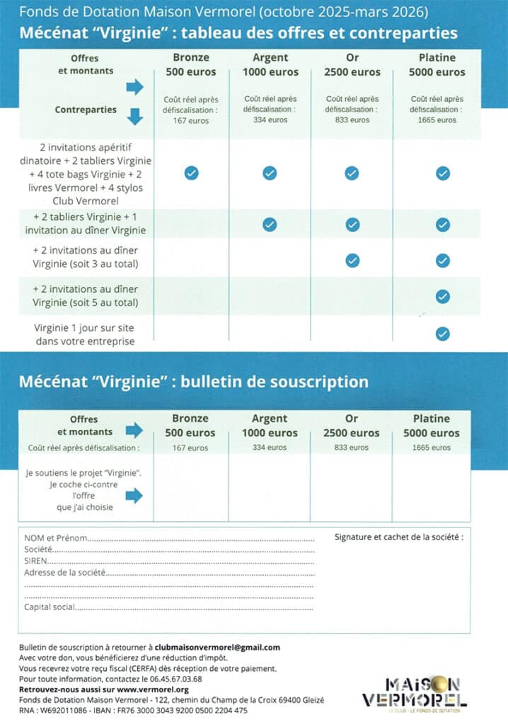 Pour en savoir plus, faire un don, adhérer au Club ou au Fonds de Dotation : clubmaisonvermorel@gmail.com – Tél : 06 45 67 03 68